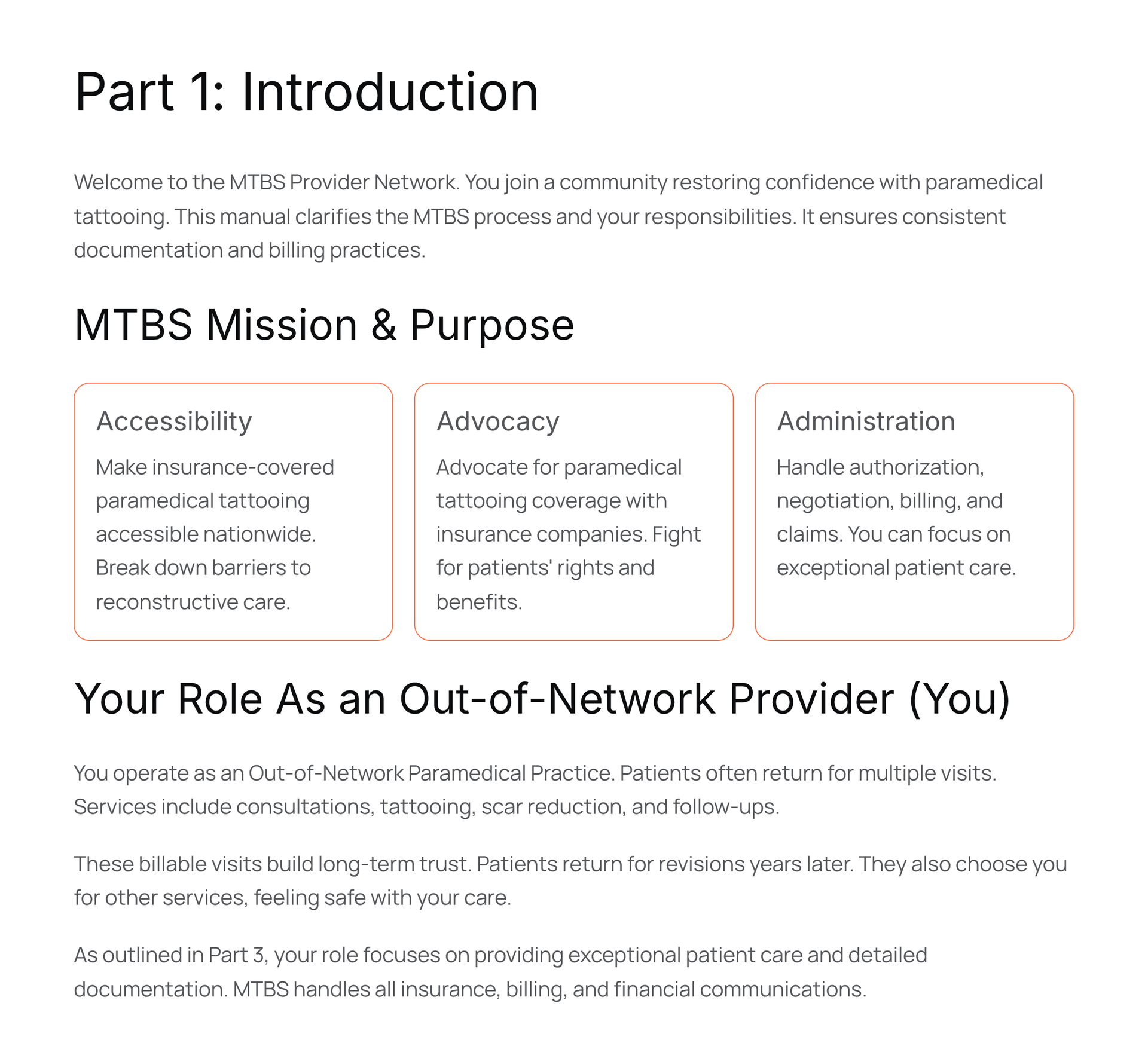 Start here for the MTBS Provider Training Manual. Overview of our mission, your role, and how Provider Navigators handle authorization, billing, and claims.